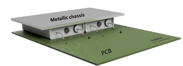 Rigid mounting is crucial for vibration resistance: An insufficiently secured printed circuit board can vibrate like a membrane and generate resonance peaks that amplify accelerations by up to tenfold. Relative movement of the capacitor on the printed circuit board can lead to fatigue fractures at the wire connections. Therefore, the mounting points on the printed circuit board should be placed close together, and the capacitor should be rigidly connected to the printed circuit board or chassis.