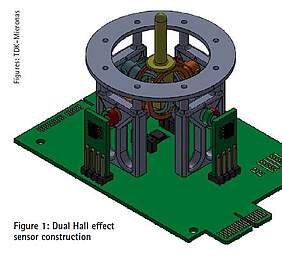 Zudem ist der Dual-Hall-Sensor-Aufbau sehr praktisch: Wie mit einem Potenziometer wird die Bewegung des Joystick-Griffes in eine Rotation des End-of-Shaft-angeordneten Magneten umgewandelt und vom Hall-Sensor aufgenommen. Der aufwändig entwickelte mechanische Aufbau von bestehenden Joystick-Designs muss - wenn überhaupt - nur minimal angepasst werden.