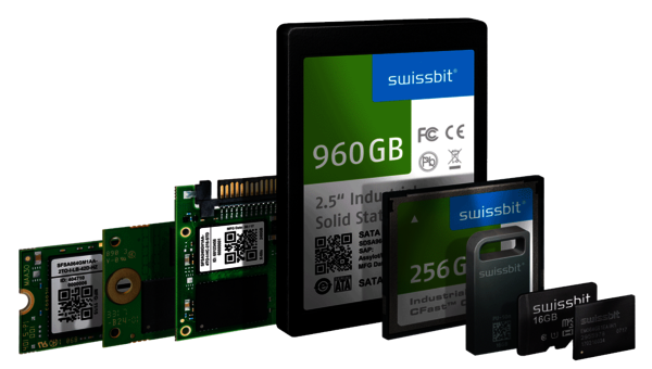 Swissbit's storage range includes SSDs with PCIe and SATA interface such as mSATA, Slim SATA, CFast™, M.2 and 2.5" as well as CompactFlash, USB flash drives, SD, micro SD memory cards and managed NAND BGAs. Security products for embedded IoT applications are available in various application specific editions as USB flash drives, SD, and micro SD memory cards.